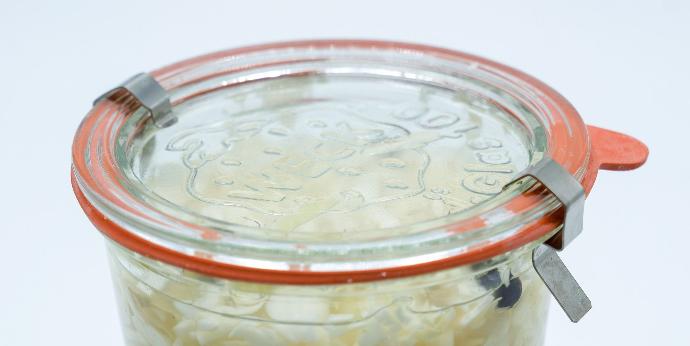 Pour la lactofermentation (voir choucroute sur la photo), nous n'avons pas trouvé de contre-indication au réemploi après contrôle visuel et olfactif.